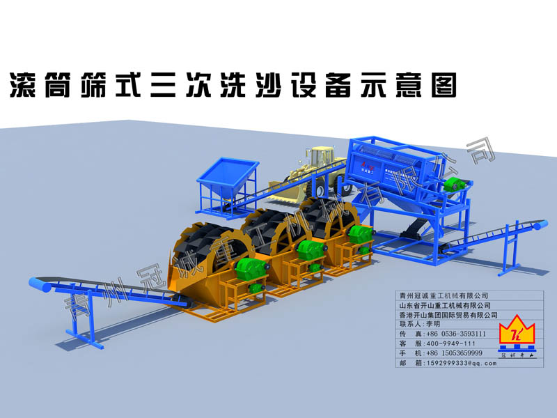 每小時80-100m3處理量滾筒篩式三次洗沙設備流程概述