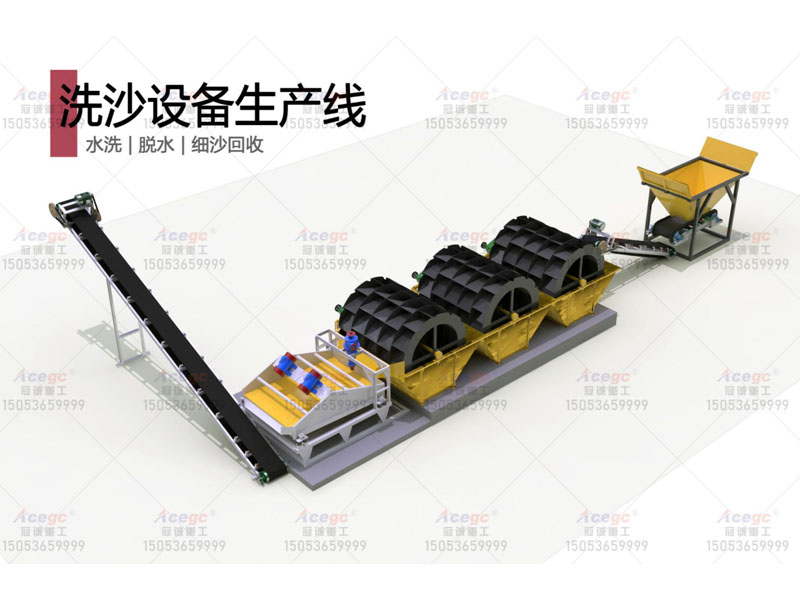 原料通過裝載機或者挖掘機,把物料送入料斗,通過振動給料機把物料勻速的送到上料輸送機,輸送機把物料送入滾筒篩,滾筒篩采用中央供水系統(tǒng),通過滾筒篩高壓水把污泥,細沙,中沙,分解分離,細沙進入三臺輪式洗砂機進行脫泥【含泥量低于千分之五,達到混凝土攪拌站和高架橋用沙標準】脫水之后把干凈的沙送入成品料細沙輸送機輸送到指定位置,中沙進入中沙成品輸送機,把中沙送到指定位置,廢料通過廢料輸送機,把廢料送到廢料區(qū),【注明:滾筒篩的篩分規(guī)格可以通過更換篩片的規(guī)格隨時可以調(diào)節(jié)更換范圍3mm--2cm】